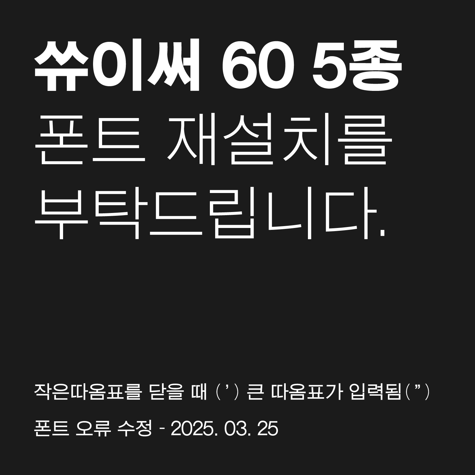 '쓔이써60 (5종)' 폰트의 업데이트 사항이 있어 알려드립니다.