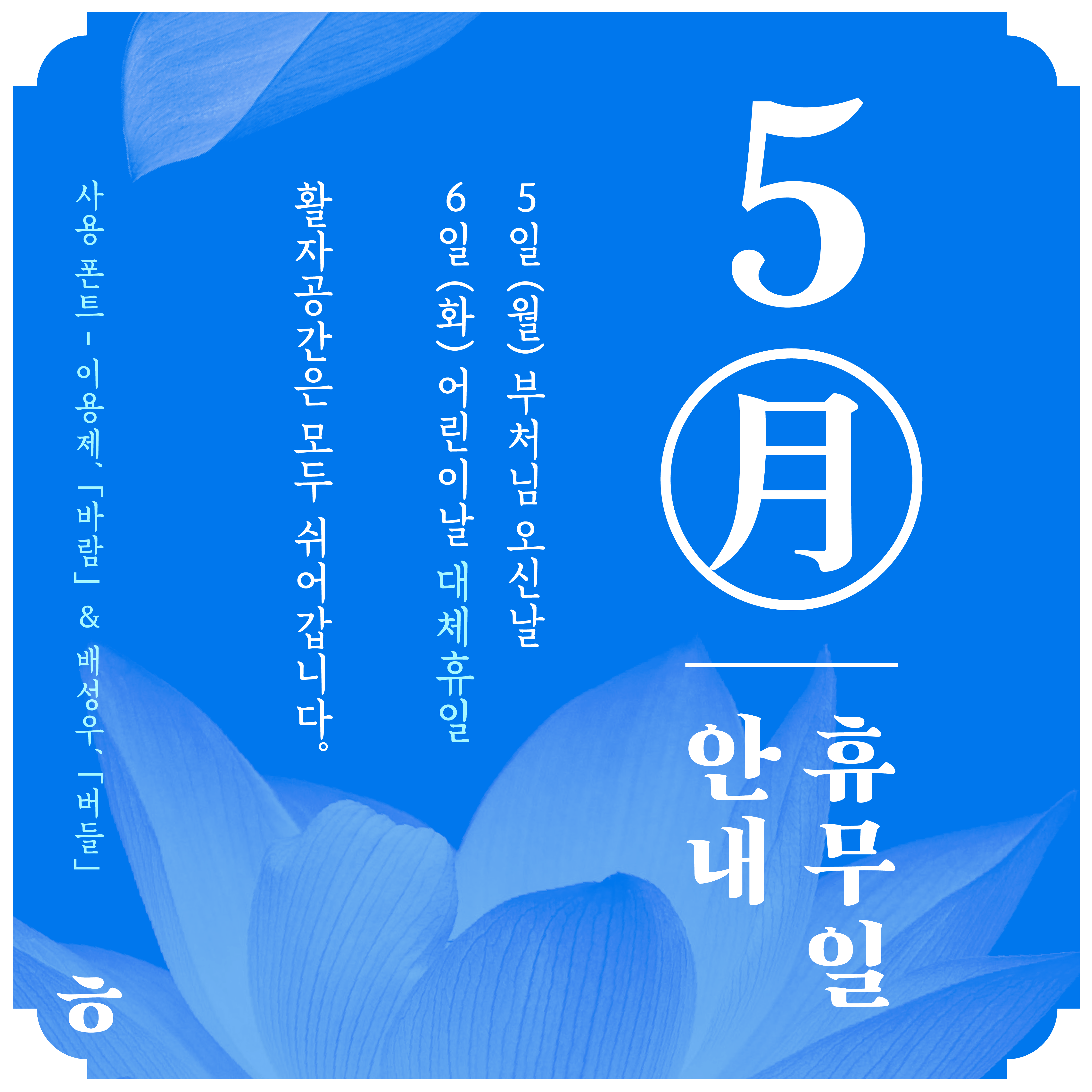 활자공간의 5월 휴무일 운영을 알려드립니다.